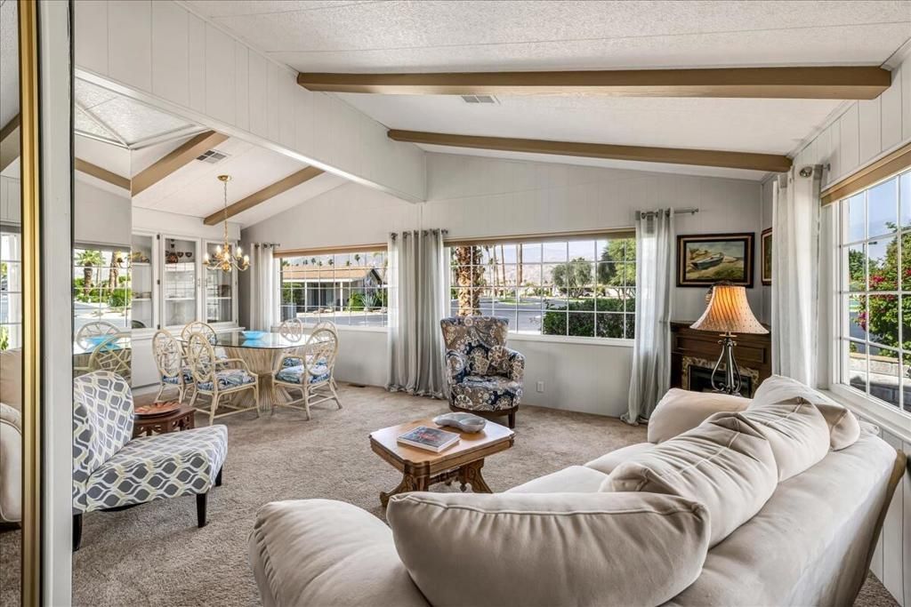 Suncrest Country Club (affectionately called ''Funcrest Country Club'' by some who live here) is a welcoming 55 and better gated community where life moves at just the right pace. Whether you enjoy a morning game of pickleball or tennis, a round of golf, or a quiet afternoon by one of the 3 pools, there's plenty to appreciate under Palm Desert's 269 sunny days a year. This well-positioned 2-bedroom, 2-bath home offers 1,536 square feet of living space and sits on one of the community's more desirable lots, with amazing mountain views, just a short distance from the clubhouse and sports courts. From both the living room and front dining area, you'll enjoy fantastice, wide, open views of the surrounding mountains. This home is being offered furnished and is thoughtfully arranged with two living areas and two dining spaces, giving you flexibility for entertaining or simply spreading out and enjoying your day. The primary suite, located in the back of the home for added privacy, featuries a spacious bathroom and generous closet space. The kitchen is open and practical, with ample cabinetry and counter space for everyday living. Outside, the covered patio stretches nearly the full length of the home. Its orientation provides comfortable shade for most of the day, making it an ideal spot to sit and take in the peaceful surroundings. Space #18 is one of the larger lots in the community, offering both a sizable side yard and an expansive backyard with plenty of potential, perhaps for a gazebo or hot tub. The carport easily accommodates multiple vehicles or a combination of cars and golf carts, and there's an additional shed that works well as a workshop, hobby space, or golf cart garage. And yes, the fabulous mountain views really are worth mentioning more than???????????????????????????????????????? once.